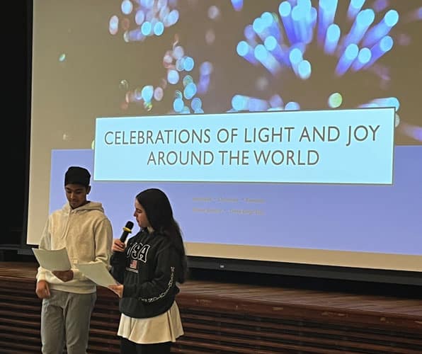 Sami shared his love of learning about other cultures and religions, explaining that talking openly about identity helps people connect more deeply. Soham described how meaningful it was to share celebrations like Diwali with the community, noting that Renbrook is a place where “students represent many different cultures, and you get to learn about it through their holidays and important celebrations.”